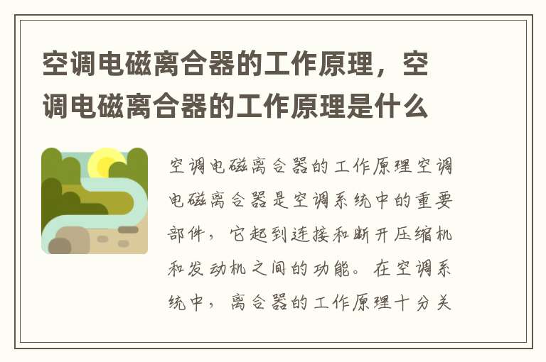 空調(diào)電磁離合器是空調(diào)系統(tǒng)中的重要部件,它起到連接和斷開壓縮機和發(fā)動機之間的功能。在空調(diào)系統(tǒng)中,離合器的工作原理十分關鍵,下面我們就一起來探索一下空調(diào)電磁離合器的奧秘吧!